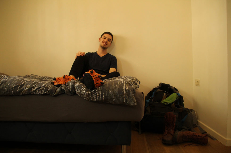 בסט הזה תכננתי לצלם את אחי הגדול, אסף, בחדר שלו, יושב עם נעלי הבית עליו ולידו הנעלי חיר והתיק של הצבא.